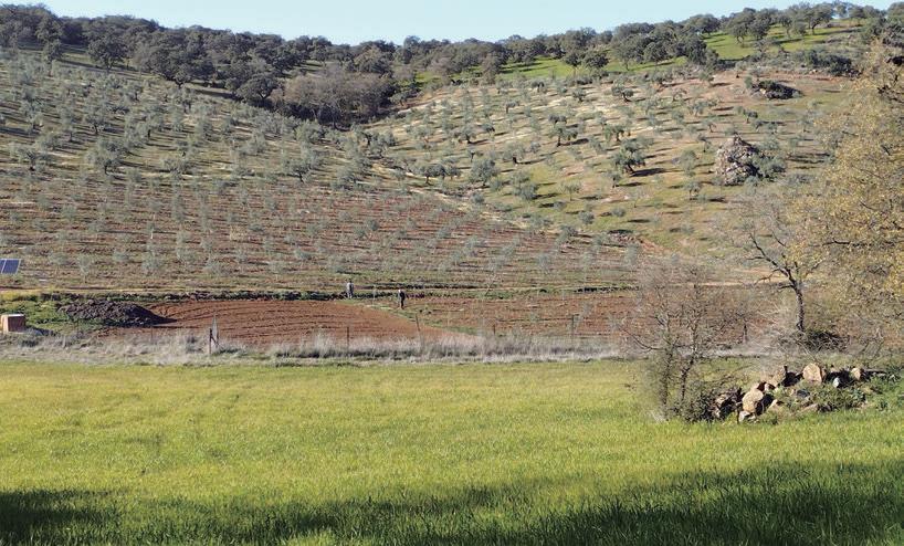 Tras una pequeña hilera de tímidos eucaliptos de hojas tiernas, Fuente Obejuna derrama su nostálgica belleza.