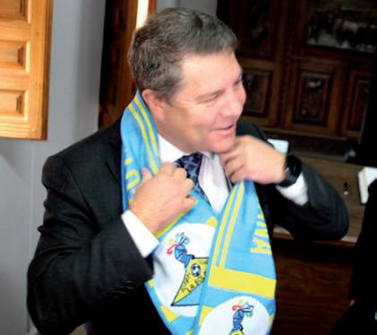 Así arrancó una cita histórica, que cedió el salón de plenos municipal para celebrar un Consejo de Gobierno extraordinario. Antes, el presidente saludó a los empleados municipales y también pasó a la alcaldía para firmar en el libro de visitas. Allí se enfundó la bufanda del FF La Solana.