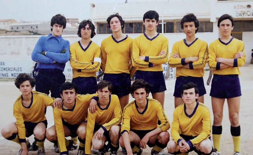 Año 1981. La Moheda. Aún faltaban diez años para la primera siembra del césped natural, aunque los vestuarios de detrás ya hacen muy reconocible dónde estamos. Este equipo que ven es el juvenil del CF La Solana, en los prolegómenos de un partido. La modestia era tal que aquellas camisetas no tenían ni escudo. Arriba, de izquierda