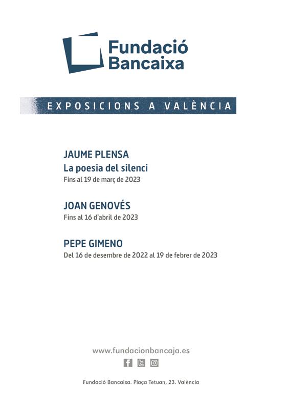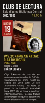 4 DILLUNS30 GAGARINE CINEPOT 19:00h.TeatreSerrano Pàg 15 DIMARTS31 DIJOUS26 PAUVIGUER TRÍO MÚSICA 20:00h.CasadelaMarquesa Pàg 6 DESOLACIÓ EXPOSICIÓ Finsal24/02 BibliotecaCentral XLIVPREMI JOANOT MARTORELL 2022 PRESENTACIÓLLIBRE 19:00h.BibliotecaCentral Pàg 20 Pàg 18 DILLUNS23 L’ALIMENTACIÓ COMAFONTDE SALUTIENERGIA XARRADA 19:00h.UPG Pàg 27 PARÍS, DISTRITO13 CINEPOT 19:00h.TeatreSerrano Pàg 15 DIMARTS24 DIMECRES25 CONFERÈNCIA UNADIVAACTUAL ENL’ÒPERADEL SEGLEXXI 19:00h.SalaTossal Pàg 25 FRAGMENTSDE LAMEMÒRIA EXPOSICIÓ Finsal22/02.SalaCollAlas Pàg 17 DIJOUS19 DILLUNS16 Pàg 9 L’EGIPTEDE TUTANKHAMON CONFERÈNCIA 20:30hores.CasadelaMarquesa UNNUEVO MUNDO CINEPOT 19:00h.TeatreSerrano Pàg 14 DIMARTS17 DIMECRES18 DIJOUS12 ELCOCHECITO CINEMA 19:00hSalódeFoment Pàg 24 EXPOSICIÓ PLEINAIR Finsal8/02.SalaTossal Pàg 17 DILLUNS9 ENUNMUELLEDE NORMANDÍA CINEPOT 19:00h.TeatreSerrano Pàg 14 DIMARTS10 DIMECRES11 CICLEPINTURAI DIVERSITAT CONFERÈNCIA 19:00h.CasadelaMarquesa Pàg 9 SegonaSetmana CALENDARI Tercera Setmana QuartaSetmana CinquenaSetmana