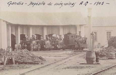 que presentem, que retrata màquines i treballadors de la línia en l’estació de Gandia, està datada 10 anys després, quan l’italià Bernardo Bovio, contractista i autor de la imatge, treballava a les obres dels magatzems del port.