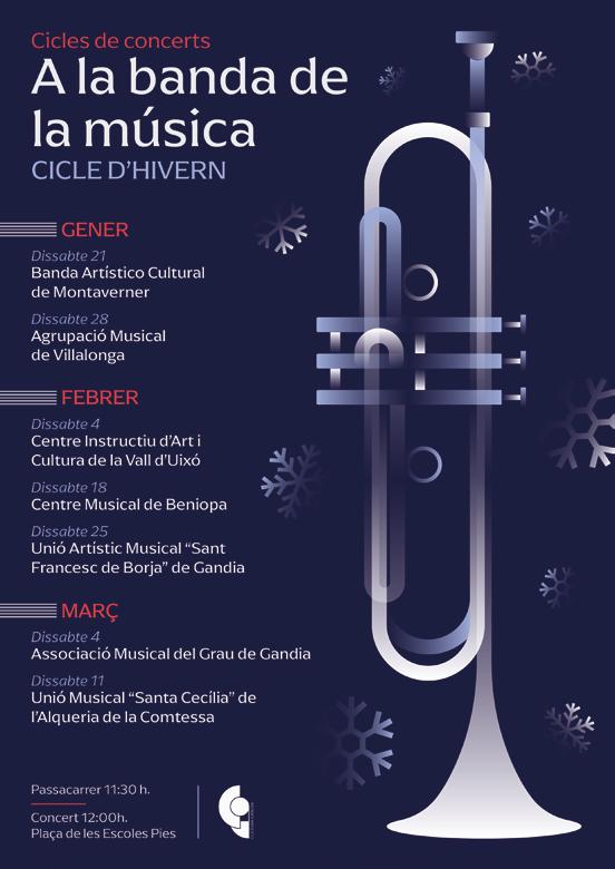 Aplega gener amb la il·lusió de l’inici d’un nou any. Seguim amb aquelles propostes que tant èxit ens han donat, com el cicle de concerts «A La Banda De La Música», que aquest mes inicia la seua edició d’hivern. També, en gener encetem una nova edició del «Cicle de Música Clàssica» a l’ermita de Sant Antoni. Continuem així, fent brollar la cultura popular que tant de caliu ens ha proporcionat durant aquests darrers mesos. A més a més, com no podia ser d’altra forma i seguint la línia, comencem l’any donant visibilitat al gran ventall d’artistes que han crescut a casa i deixaran reflectida a les sales d’exposició que Gandia és un referent cultural per l’art que a ella l’envolta. Com totes sabem, l’inici d’any és un espai de noves propostes, una època de ruptures amb l’establert en la nostra vida quotidiana. És per això que ens hem volgut fer ressò apostant per donar espai a les noves tendències artístiques teatrals que seran reflectides amb l’electro-òpera anomenada «Manifest Antiromàntic».