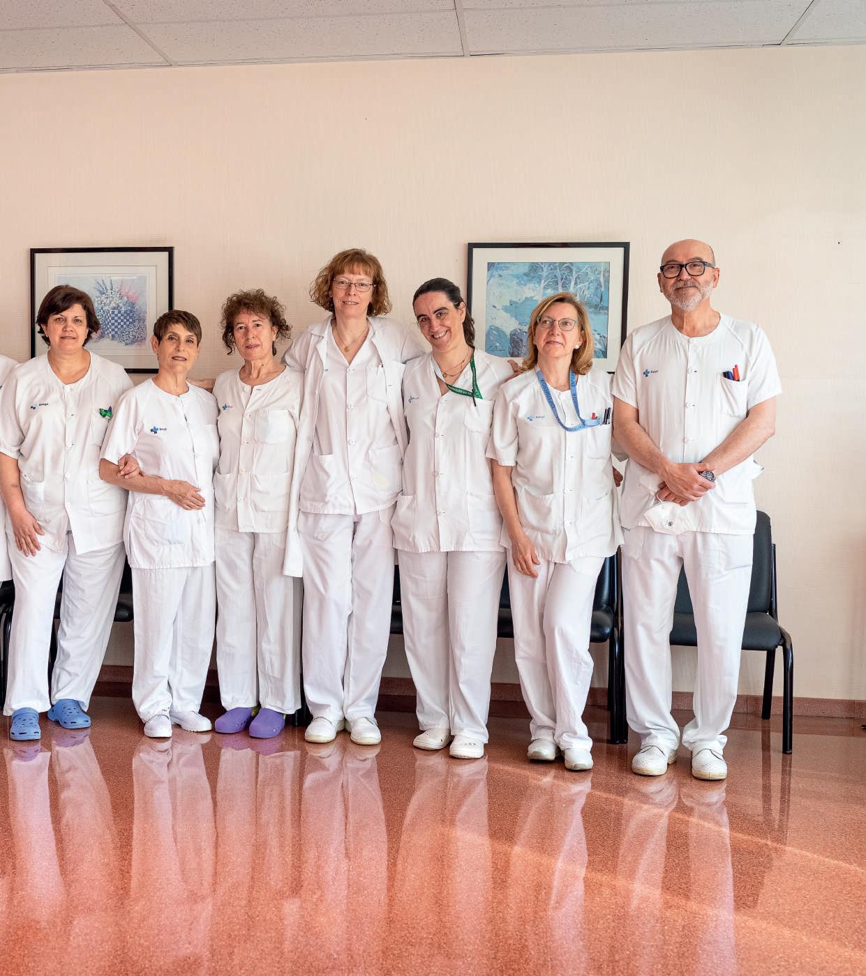 El trabajo de la división de Enfermería también está presente en estas páginas, en concreto el de las áreas de Cuidados Paliativos y Nefrología. No nos olvidamos de otros colectivos no sanitarios, como la Unidad de Trabajo Social, que asimismo queremos dar a conocer. En suma, esperamos con este nuevo número de la revista que nuestros pacientes conozcan mejor el hospital y nuestros servicios, avanzando en el objetivo de la humanización de la sanidad.