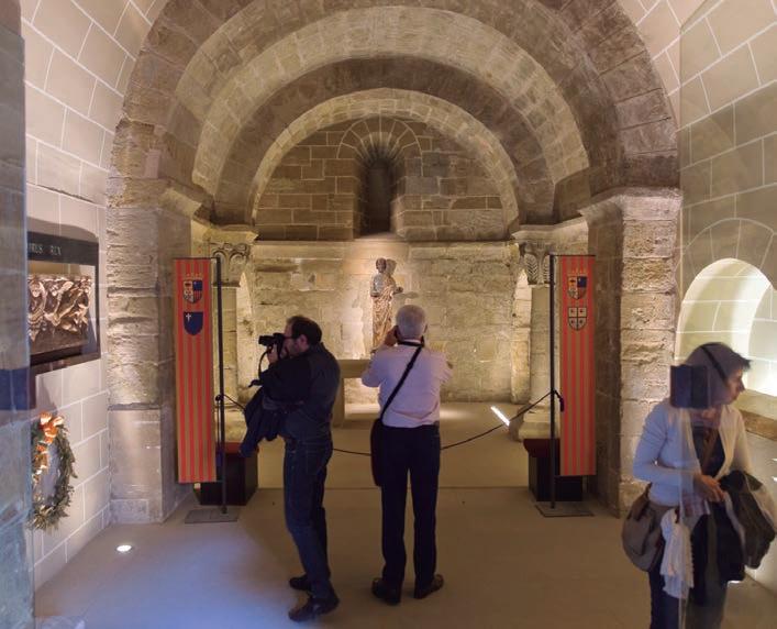 entre los caracteres del románico lombardo del recinto inicial y el románico jaqués posterior. El castillo-abadía de Montearagón, albergó una importante comunidad de monjes durante siglos y fue panteón real hasta el siglo XIX.