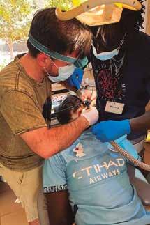 La atención a adultos también fue prioritaria. La Dra. María Ángeles Rodríguez, jefa del Servicio de Cirugía Maxilofacial del Hospital Virgen de la Arrixaca, y el Dr. Pedro Caballero, presidente del Colegio Oficial de Dentistas de la Región de Murcia, realizaron tratamientos quirúrgicos dentales a más de 300 adultos.