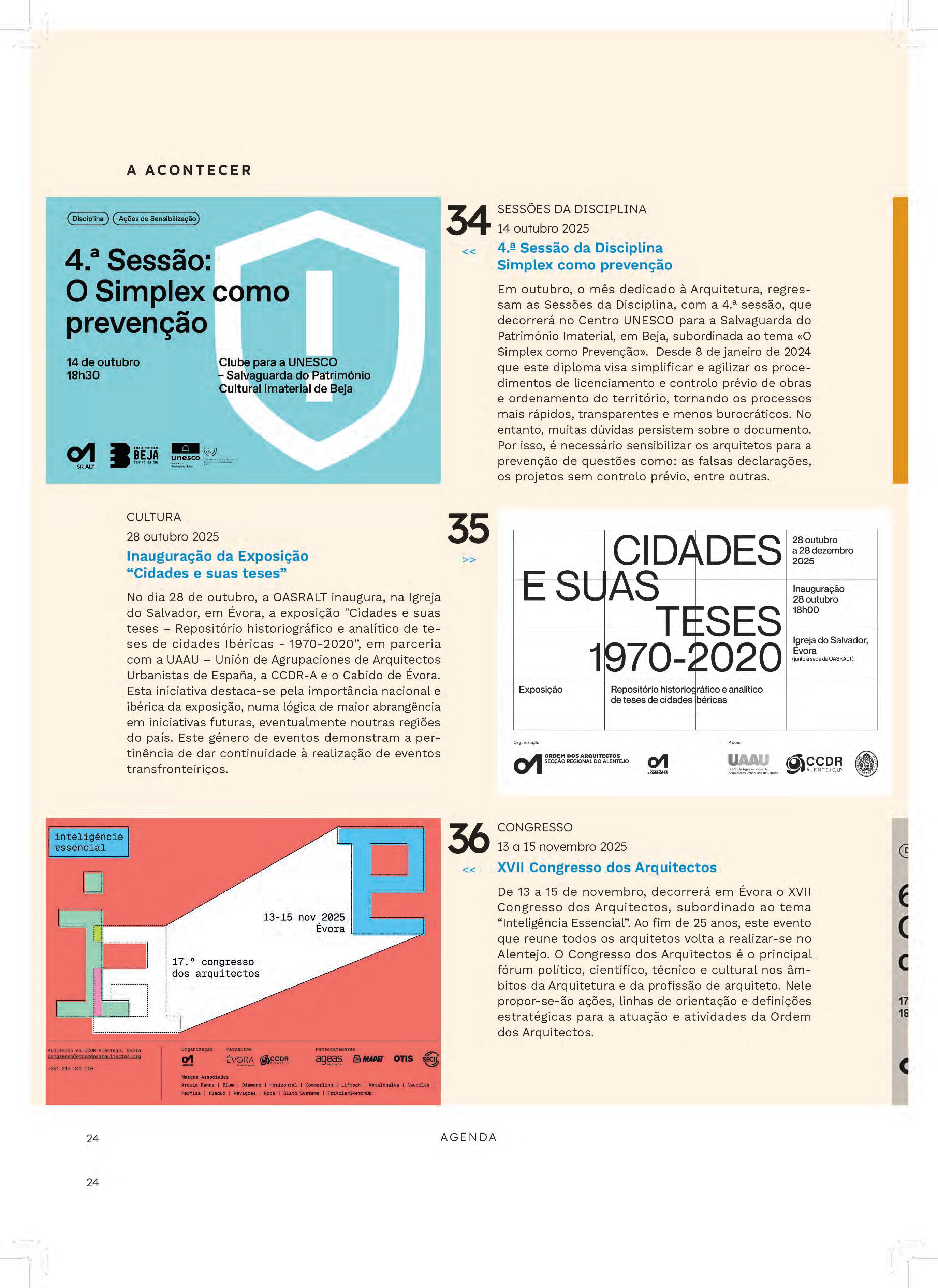 AGENDA DA SECÇÃO REGIONAL DO ALENTEJO