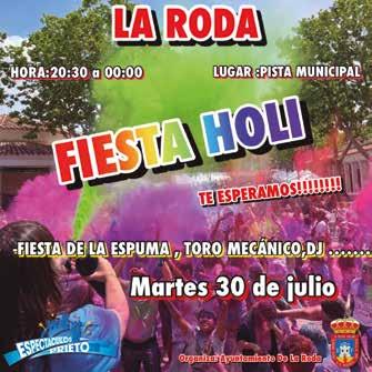 Fiestas que acogen gran cantidad de actividades y actos lúdicos, festivos como la Batalla Floral, deportivos, taurinos, culturales con la Gala Literaria y gastronómicos que organiza vuestro Ayuntamiento, en colaboración con distintas asociaciones y que en esta ocasión por primera vez la Corte de Honor y la Infantil van a ser mixtas, junto a los actos litúrgicos y religiosos con la solemne Misa y Procesión por las calles de La Roda para mostrarle vuestro agradecimiento.