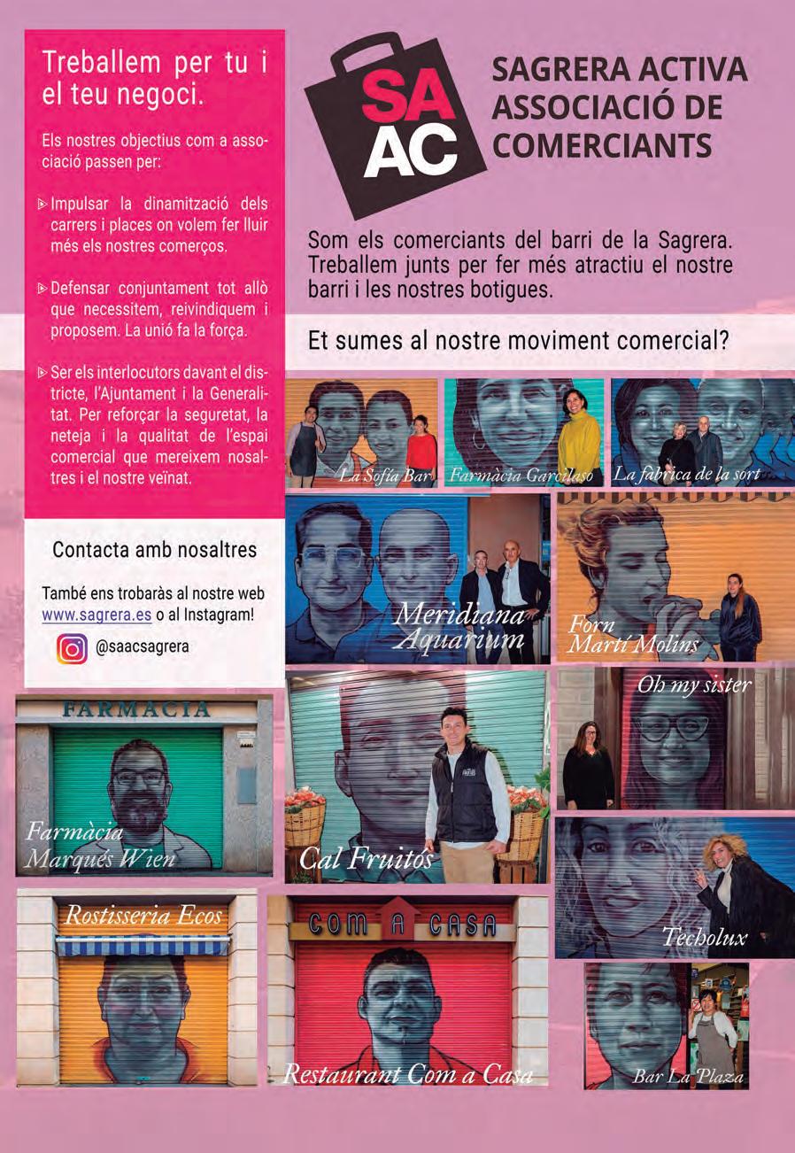 Aquestes festes no serien possibles sense l’esforç i la col·laboració dels comerços del barri, que amb el seu suport contribueixen a fer créixer i enfortir la nostra comunitat. També volem agrair a l’Ajuntament el seu compromís per fer possible aquesta celebració. Entre tots, fem de la Sagrera un barri viu i dinàmic.