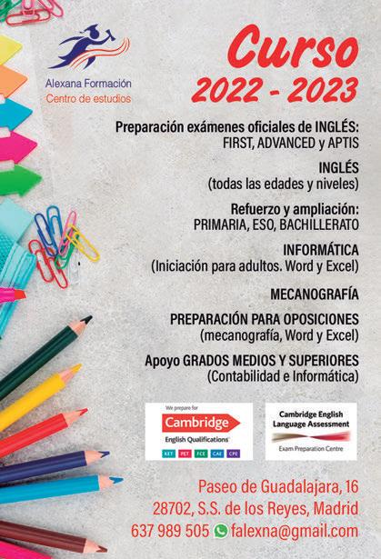 CULTURA 3 LA PLAZA16 de septiembre de 202216 de noviembre de 2020 sumario. Edita: Ayuntamiento de San Sebastián de los Reyes. Tel. 91 659 71 00. informacion@ssreyes.org // Alcalde-Presidente: Narciso Romero Morro // Jefe de Medios de Comunicación: Luis M. Candil Martín // Redacción: Laura Martín, Laura Rodríguez y Guillermo Escobar // Auxiliares de Redacción y Documentación: Mª Carmen Castellanos, Carmen García Escobar // Fotografía: Tomás Calle // Redacción: 91 659 71 34 y 91 625 88 19 comunicacion@ssreyes.org // PRODUCCIÓN EDITORIAL: Editorial MIC // Publicidad: Editorial MIC. Telf.: 649 834 913. rosana@editorialmic.com // Redactor jefe: Juan Diego Tobajas. laplaza@editorialmic.com Distribución: Apadis // Depósito Legal: M. 36. 938-1979 Las opiniones vertidas en los articulos de esta publicación son únicamente responsabilidad de su autor/a y no necesariamente coinciden con la línea editorial de “La Plaza de la Constitución” 16 SEPTIEMBRE 2022 • Nº524 04 Agenda cultural de la segunda quincena de septiembre 20 En otoño
