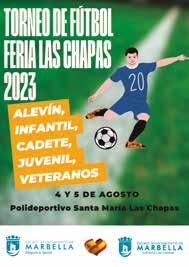 Inscripciones: Tlf. 952.76.87.14 –Delegación Deportes Las Chapas (Mario Pérez) – Horario Lunes a viernes de 09:00 a 14:00 Hrs. – Último día de inscripción 02/08/23.