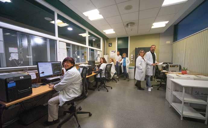 Facultativos especialistas, residentes, técnicos superiores de laboratorio clínico y administrativos forman un equipo que recibe y procesa todas las muestras clínicas de los pacientes cuyo cuadro clínico puede haber sido provocado por un agente infeccioso. Se estima que hasta el 70 % de las decisiones clínicas se basan en pruebas diagnósticas de laboratorio clínico.