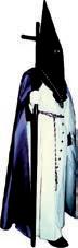 Túnica negra, sencilla, con cordones plateados en el reborde inferior del capillo y en la parte superior de las bocamangas.