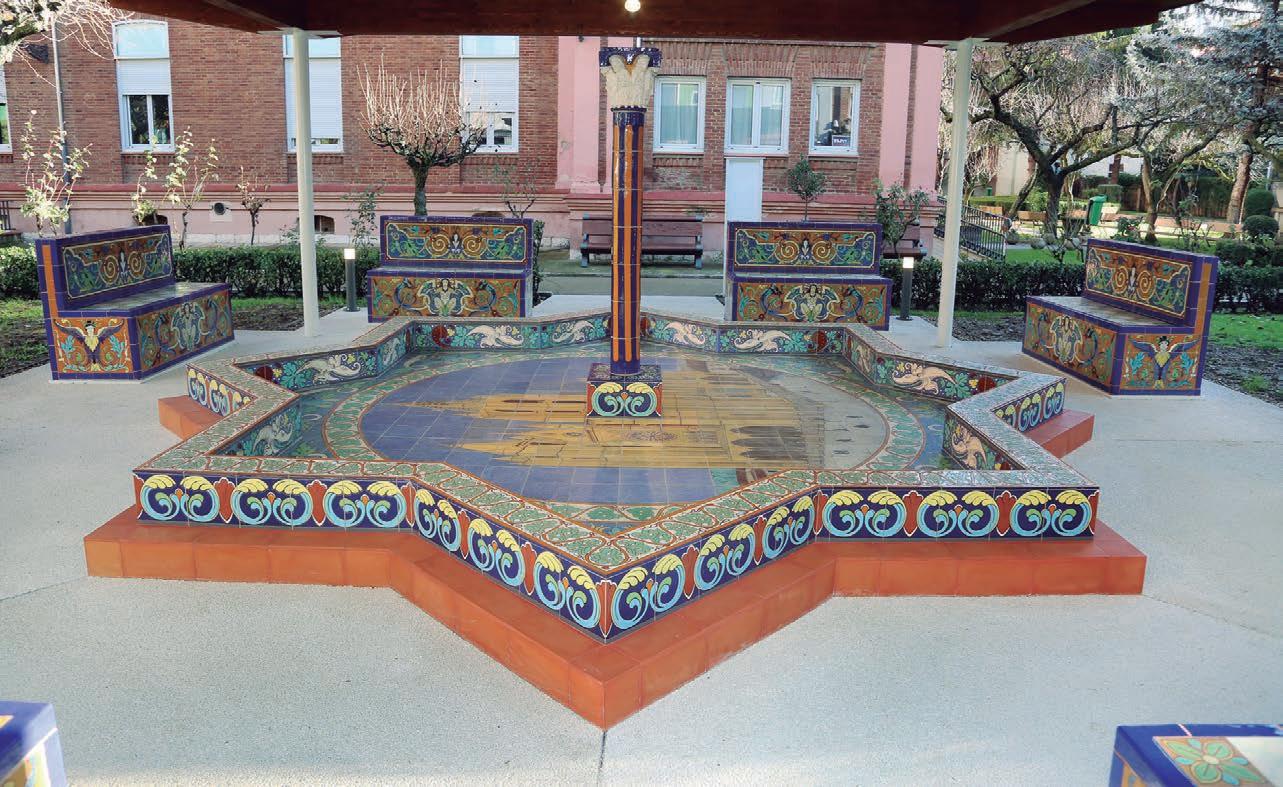A las realidades materializadas del Plan EDUSI hay que sumar también la referente a la restauración del legado del reconocido ceramista Daniel Zuloaga. De su taller salieron en 1928 el conjunto de ocho bancos y una fuente con el objetivo de ubicarlos en la plaza de la Catedral. Poco tardaron allí, pues en la década de los 40 se ocultó el vaso de la fuente bajo unos nuevos jardines y los bancos se trasladaron a la que hoy es la residencia de mayores Virgen del Camino. En las obras de peatonalización de la plaza de Regla en 1996 descubrieron el vaso de la fuente enterrado y entonces de él retiraron los azulejos que se almacenaron en dependencias municipales hasta salir ahora de nuevo a la luz. Todo el conjunto de azulejos, más de 2.000, se ha sometido a un minucioso proceso de restauración no exento de mucha dificultad pues muchos de los azulejos se habían extraviado. Para componer de nuevo el legado de Zuloaga ha sido necesaria la colaboración del taller de los familiares del ceramista segoviano que mantiene su actividad en la