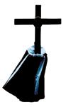 Indumentaria: Túnica de color azul marino sencilla, sin tablas. Manga ancha, capuchón de un metro de largo de color azul marino con el emblema de la cofradia.