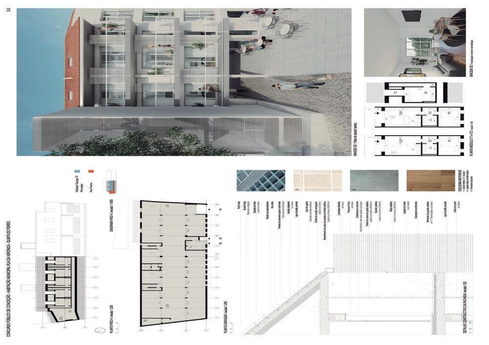 A proposta é reveladora de relevante clareza e consistência formal, introduzindo qualidade espacial com particular evidência na relação estabelecida entre os apartamentos e as circulações comuns horizontais, potenciando a apropriação parcial dos espaços comuns. Destaca-se ainda a elevada adequabilidade programática e funcional da proposta. Quanto às questões construtivas, a proposta demonstra particular atenção à durabilidade e manutenção dos materiais utilizados, embora um menor grau de desenvolvimento das soluções de eficiência energética. É ainda de referir que a escolha do tijolo maciço em paredes e revestimento, apesar de se destacar em durabilidade, apresenta-se como uma solução potencialmente mais onerosa, sobretudo em termos de mão de obra especializada na sua aplicação.