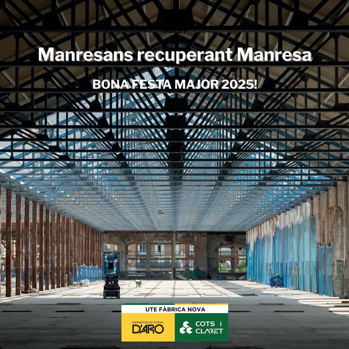 Durant mesos hem treballat amb l’Associació Manresa de Festa, les entitats, col·lectius, serveis tècnics municipals i moltes persones que, des de la dedicació i l’estima pel que fem, fan possible una festa pensada per a tothom. El meu agraïment més sincer a totes elles.