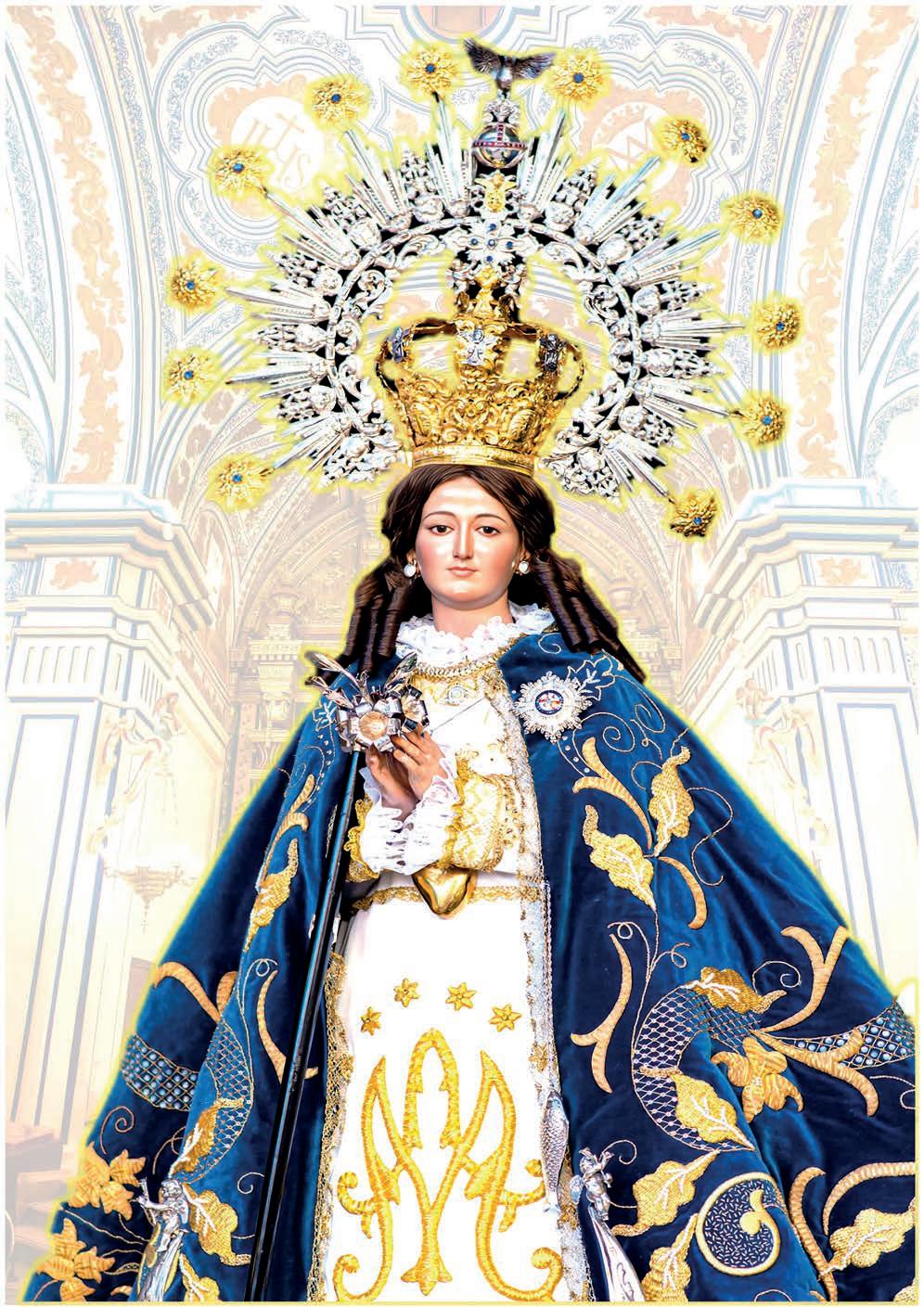La Purísima, la Madre, es la atalaya de la fe en nuestro pueblo. No es invisible para el que la busca. No se esconde en el peligro. No se amedrenta en las dificultades. No cierra los ojos ante nuestro sufrimiento. El corazón de María es el corazón de la Iglesia. María es nuestro refugio frente a la sinrazón del mundo, de la vida, de las guerras, del desconsuelo, del duelo, del que olvida a Dios y provoca el sufrimiento en los demás, de quien se olvida de Dios y anda vacío y estraviado. Y por ello nos convoca de un modo particular en estos días de fiesta en su honor: para reunir a sus hijos, los cristianos, en la Iglesia, y formar Iglesia, sentirnos Iglesia, sentirnos parte de la Iglesia, como ella. Para dejarnos abrazar y mimar por Ella, para sentir la vida nueva que nos ofrece el que es el Camino, la Verdad y la Vida (Jn 14, 6), y retomar a partir de estos días nuestra vida eclesial. Alejados somos débiles… unidos seremos fuertes y alegres testigos de esperanza, testigos de su amor.