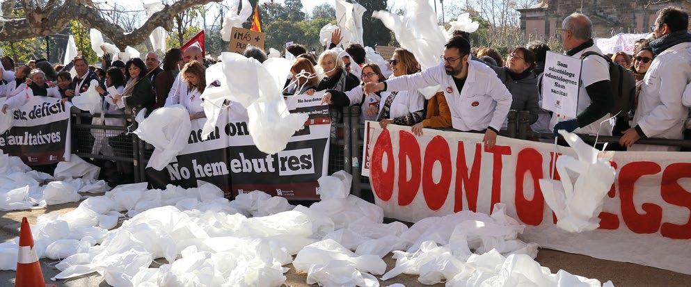 El personal facultatiu es mobilitza en el segon dia de vaga per demostrar cohesió i reclamar millores en les seves condicions laborals i assistencials. Prop de 5.000 professionals es planten davant el Parlament de Catalunya i llencen les seves bates blanques en senyal de protesta.