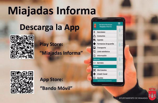 La descarga de dicha App será diferente si el teléfono móvil tiene un sistema operativo Android o iOS (IPhone). Para aquellos cuyo sistema operativo es Android, deberán acceder desde su Google Play Store y escribir en el buscador “Miajadas Informa”. Aquellos cuyo sistema operativo es iOS, deberán acceder desde App Store y escribir en el buscador “Bando Móvil”. Una vez descargado sólo tendrá que seleccionar: Miajadas Informa.