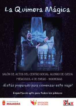 A las 17:30 horas, EN EL SALÓN DE ACTOS DEL CENTRO SOCIAL, ESPECTÁCULO DE MAGIA: ‘LA QUIMERA MÁGICA’.