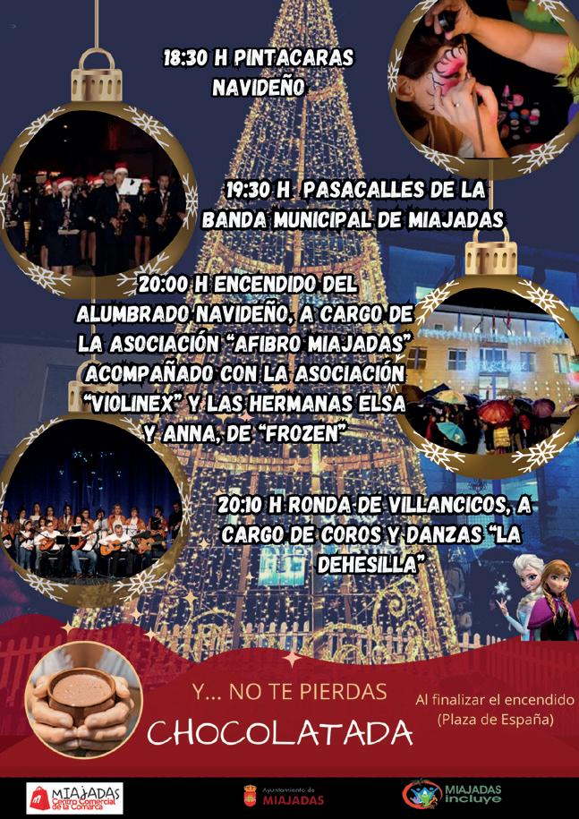 A las 20:00 horas, EN LA PLAZA DE ESPAÑA, ENCENDIDO OFICIAL DEL ALUMBRADO NAVIDEÑO, a cargo de la Asociación ‘Afibro-Miajadas’