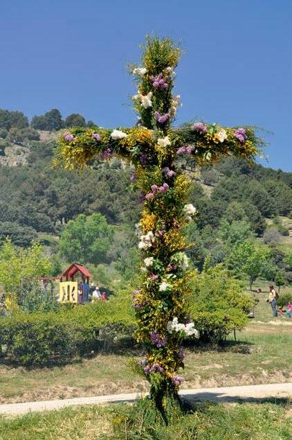 Lo que no faltaba en ninguno era el símbolo de la fiesta, la Cruz, hecha con un par de maderas cruzadas y recubierta de retamas en flor, de mayor o menor tamaño según el gusto de cada uno. La del taller de Julián Segovia era especialmente pequeña, pero es que el bueno de Julián tenía una teoría clara sobre el tema: “La cruz, pequeña; y la merienda, grande”, decía siempre.