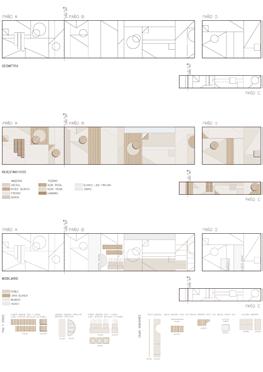 torias. Sentarse en corro para atrapar la atención y hacer que la historia te abrace. Esta idea se alejaba del mobiliario regular y en serie que encontramos en los espacios escolares, y propiciaba unas mesas de trazo libre que abrazaban al profesor y alumnos, acomodándose en el espacio irregular del local.