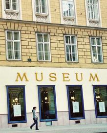 Karntner Bar, construido una década después del Café Museum, en el que cambia radicalmente de criterio planteando una fachada rica en ornamentos en la que destaca el antecuerpo de cristal en forma de prisma que sobresale situado sobre tres puertas de vidrio del mismo tamaño. El prisma, realizado en cristal de color, consta de dos partes, en la parte inferior encontramos una bandera estadounidense en la que se lee el nombre del bar y en la parte superior un rotulo en la que se