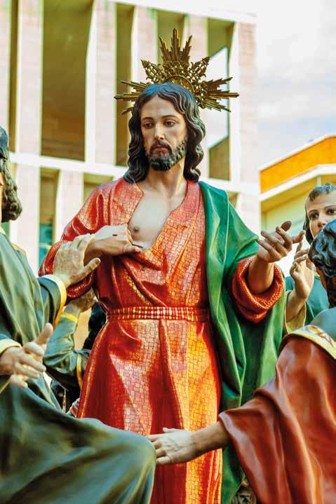 espacio; pero no por eso nuestra devoción ha de ser menor. Después de todo, participamos en los misterios de Cristo no mediante imaginación o sentimiento, aunque estos tengan también su cometido, sino por la fe y los sacramentos. Pensad que, en la liturgia de Semana Santa, la Iglesia revive en la fe el misterio salvador de la Pasión, Muerte y Resurrección del Señor.