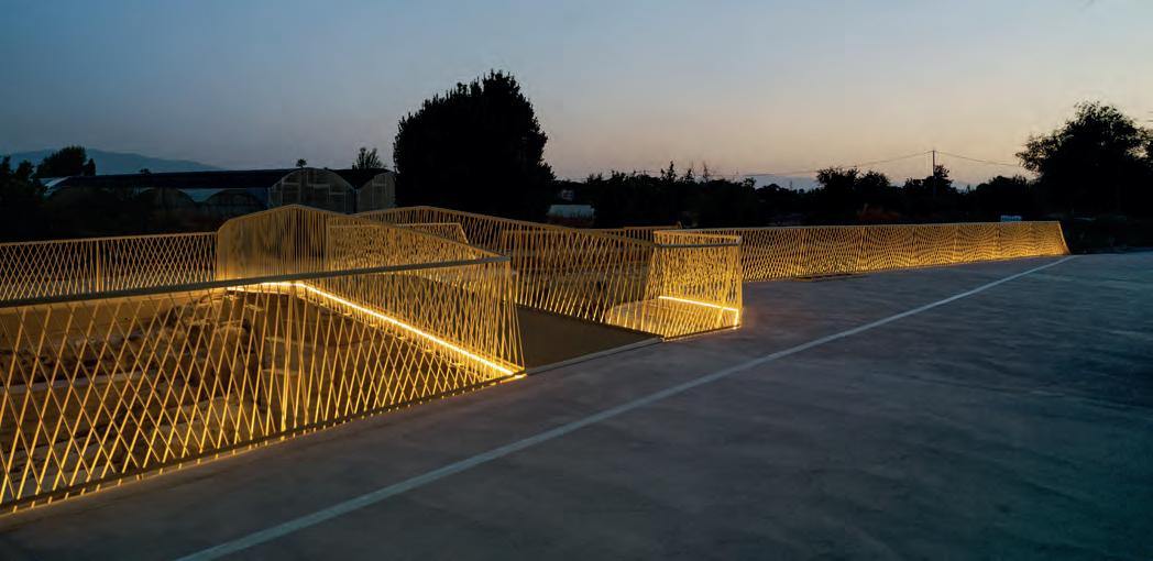 A pesar de sus geometrías complejas, su ejecución está definida para ser realizada por talleres locales lo que supone una reducción de la huella de carbono en la ejecución de la obra, al minimizar las distancias en la obtención y manipulación de los materiales.