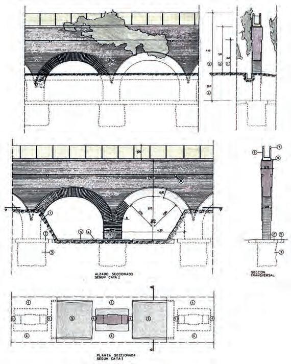 de una arquería. Se construye mediante una serie de arcos –muy rebajados-, que por la escasa altura entre la clave y la cara superior de la cimentación, tendría simplemente una función de drenaje para las aguas de lluvia.