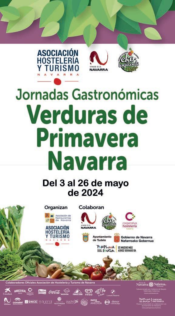 Las Jornadas Gastronómicas de la Verdura Navarra se desarrollan en tres eventos a lo largo del año, coincidiendo con las cosechas, concretamente en Invierno, Primavera y Verano, en las que los alimentos difieren siendo propios de cada época, con el objetivo de ofrecer la auténtica gastronomía, desde la tradicional a la más innovadora. Se trata de promocionar lo mejor de nuestra huerta, poniendo en valor los productos en su temporada, destacando lo saludable y sano que supone disfrutar de estos menús, vinculando a la hostelería y el sector turístico navarro con su alimento más auténtico y relevante, las verduras. La materia prima de la huerta Navarra es la base para confeccionar unos menús donde la verdura es la protagonista. Las jornadas suponen organizar talleres de formación culinaria o agrícola; catas de productos; eventos populares dirigidos al público; organización de experiencias gastronómicas; oferta de menús y pinchos especiales…. www.verdurasnavarra.com