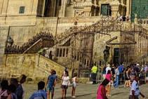 Octava de San Fermín. Plaza Consistorial. La Corporación en Cuerpo de Ciudad se dirige a la Parroquia de San Lorenzo para asistir a la función, con intervención de la Capilla de Música de la Catedral y orquesta de cámara.