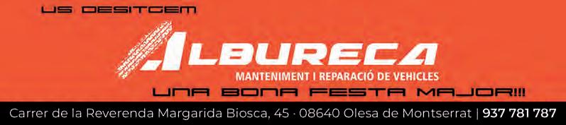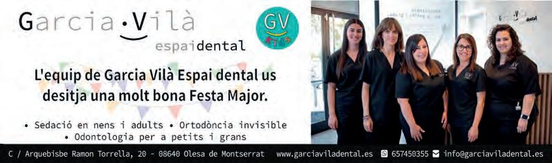 La Festa Major és possible gràcies a les entitats olesanes i a moltes persones que, des de dins i fora de l’Ajuntament, fan que aquesta festa sigui una realitat viva i participativa. Gràcies per la vostra feina, pel vostre compromís i per estimar Olesa com ho feu.