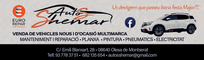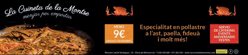 Venda anticipada a Entràpolis Olesa de Montserrat, i recollida del material a la Casa de Cultura del 12 al 20 de juny: de 10.00 a 13.00 h i de 17.00 a 20.00 h. Fins a esgotar existències.