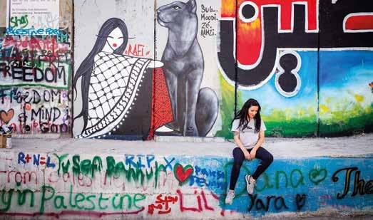 Outra pintura muito especial foi a que fiz em Belém, na Palestina. Desde pequenina que queria ir à Palestina, não sei porquê, mas sempre tive uma vontade muito grande de ir à Terra Santa. Estive lá em 2018 e lembro-me de chegar a Jerusalém e é fascinante olhar para aquelas pedras: quantos pés, quantas
