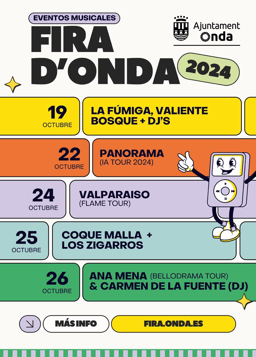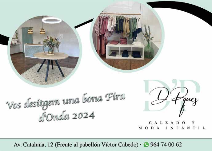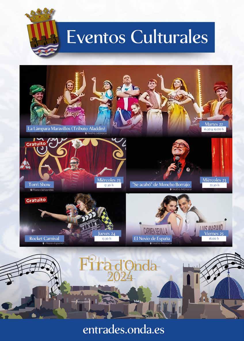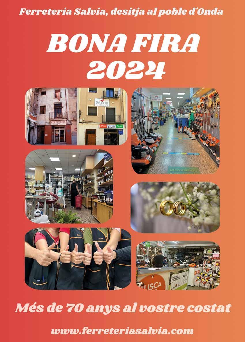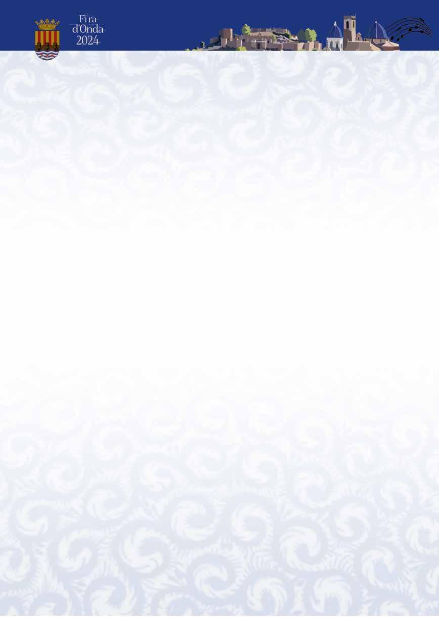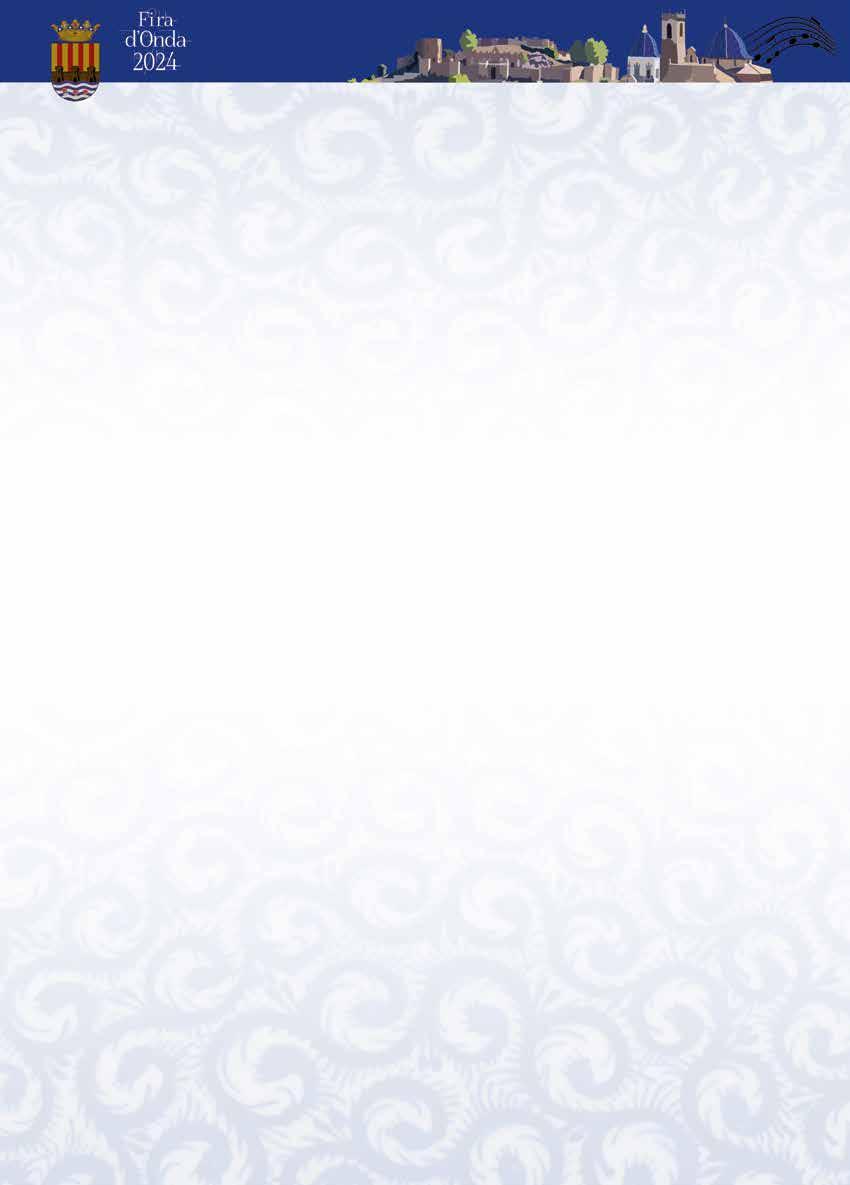 D’ací a poc començaran les vostres Festes Patronals i la Fira de 2024, i plenes d’il·lusió, espereu impacients l’arribada dels vostres dies grans. Vull fer-vos arribar, a tots els veïns d’Onda, una afectuosa salutació i els meus millors desitjos i animar-vos a viure plenament d’estes celebracions tan especials.
