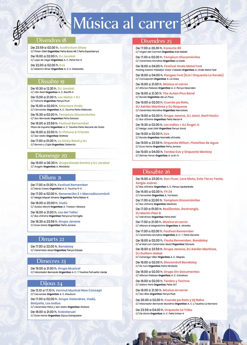 Es tracta, sens dubte, d’una data assenyalada en el calendari de tots vosaltres, els onders, que amb tanta il lusió heu preparat una programació espectacular per a gaudir d’una setmana especial, la més esperada de l’any. Són dies en què mostreu les vostres grandeses i inundeu els carrers de la població de color i alegria. Eixe color que representa a cadascuna de les penyes, nucli de la festa.