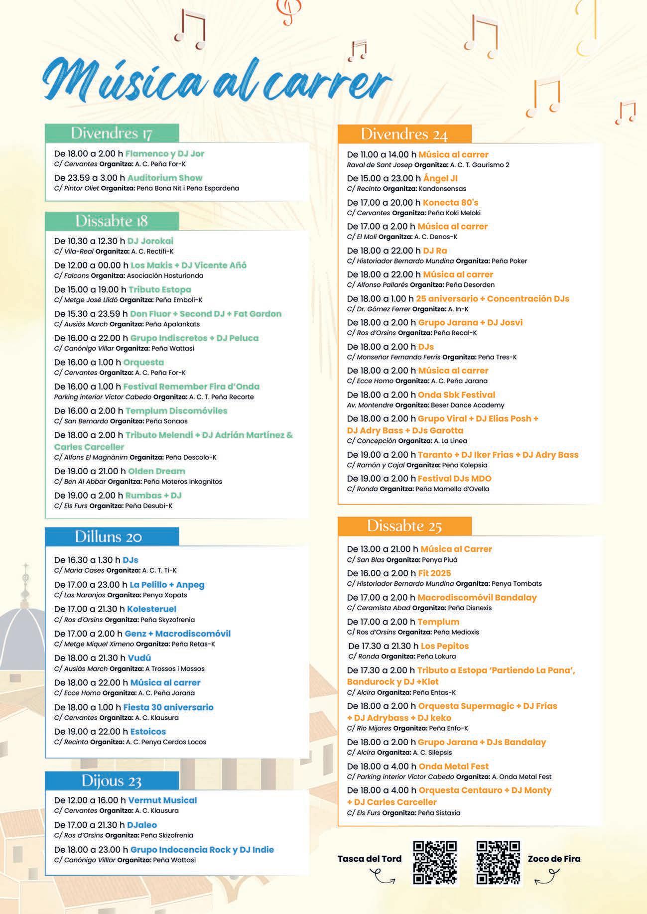com onders, per a gaudir de la música i participar en cada un dels actes programats i que ompliran d'un ambient especial Onda durant la setmana més especial de l'any.