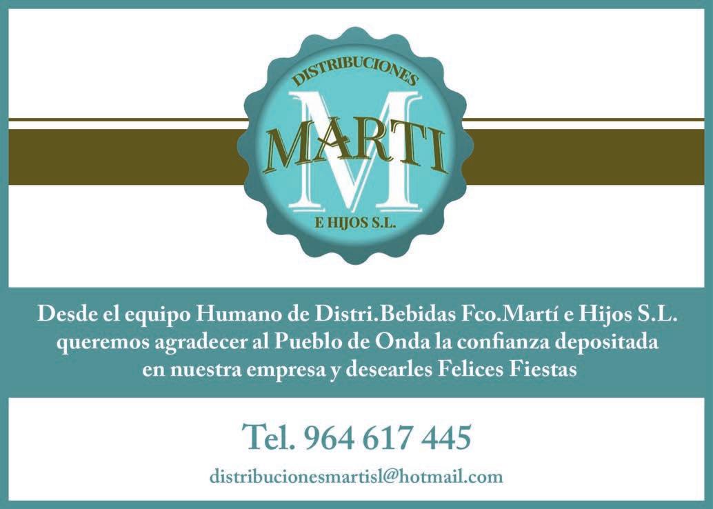 entusiasme per a fer possibles la Fira i les Festes Patronals; vull agrair-vos des d’estes línies eixa entrega i enviar a tots els veïns d’Onda la meua salutació més cordial i els meus millors desitjosper a les celebracions d’enguany i per a totes les que viureu junts en el futur.