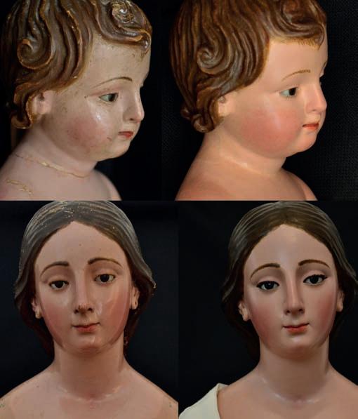 Comparativa del estado del estado de restauración de las esculturas antes y después de la intervención