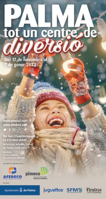 Llega Navidad, una Navidad, al fin, ¡en la que vuelve la normalidad! Sin mascarillas, ni espacios entre sillas. Os deseo que podáis disfrutar de tiempo en familia, amigos y de fuertes abrazos y reencuentros, la esencia de estas fiestas. Para fomentar este ambiente de fiesta y hermandad, recordad que hemos puesto en marcha la campaña Palma, todo un centro de diversión, con el objetivo de dinamizar el centro de la ciudad, hacerla más viva, abierta y divertida, así como fomentar que la gente la visite y los niños puedan disfrutar de la magia de estas fechas.