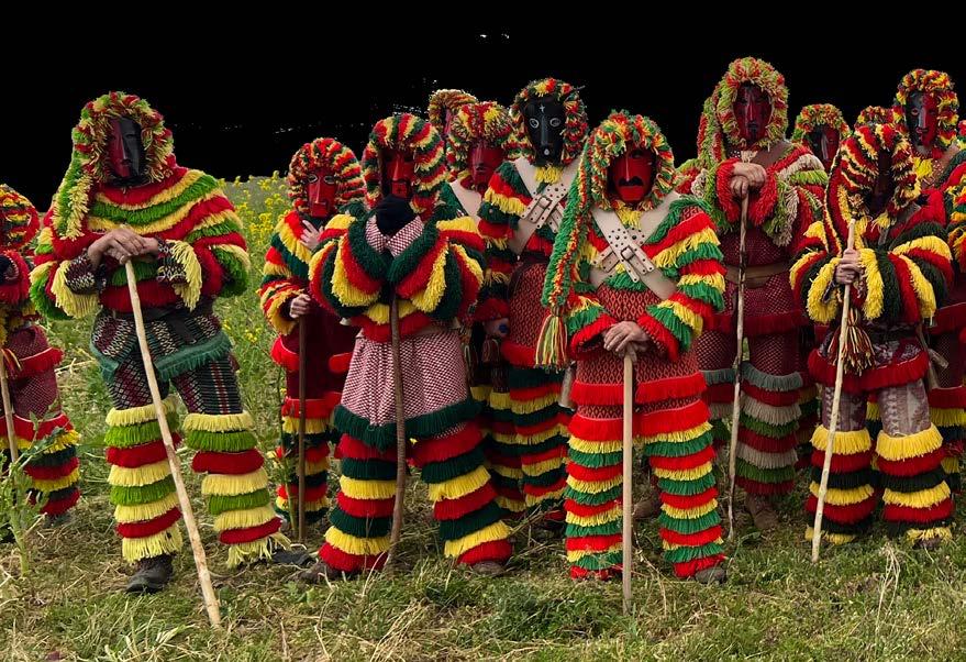 Aqui, cada máscara conta uma história, cada chocalho anuncia a chegada da primavera e cada gesto carrega séculos de tradição transmitida de geração em geração.