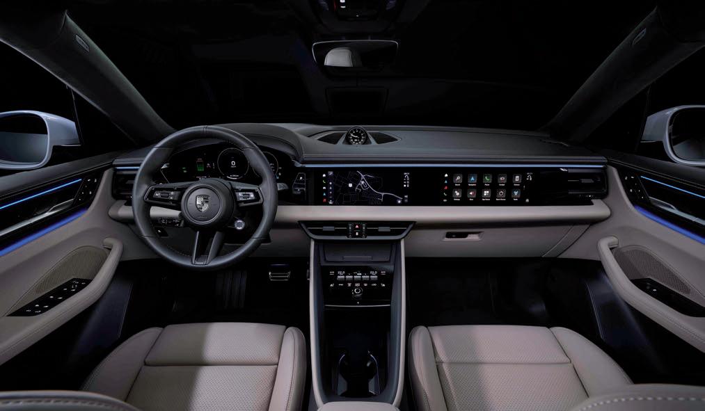 Although the models weigh up to 15 kilograms less, the standard equipment is even more extensive than before: Ambient lighting, ParkAssist with reversing camera, electrically folding exterior mirrors with mirror surround lighting, heated front seats, Porsche Intelligent Range Manager (PIRM), heat pump with a new cooling system, smartphone tray for wireless charging, electric charging ports, Drive Mode switch in the steering wheel and Power Steering Plus.