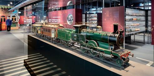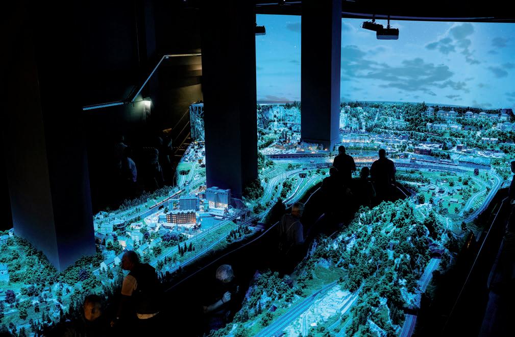 UMA HISTÓRIA ÚNICA QUE NÃO SE FEZ APENAS NOS CARRIS. Em vários stands temáticos no primeiro andar, os visitantes do museu podem descobrir a surpreendente variedade de produtos Märklin em terra, no mar e no ar. Desde electrodomésticos funcionais, como fogões para crianças e carruagens delicadas, a motores a vapor e navios movidos a relógio. No segundo piso, tudo gira em torno do tema “Locomotivas Märklin”. Naturalmente, modelos espectaculares de locomotivas, como a H0 “Millennium Crocodile”, com o seu corpo em platina 950 e rubis como luzes de manobra, ou a locomotiva da classe 89 da bitola Z, construída numa lâmpada, atrairão muitas atenções. Aplicações de realidade virtual, animações em movimento e filmes de vídeo transmitirão de forma viva a história da empresa e lançarão luz sobre produtos de destaque de 165 anos. Uma linha de montagem também permite vislumbrar o processo de produção quotidiano, demonstrando de forma impressionante as várias etapas envolvidas na montagem de um modelo como parte da “produção transparente”. Um íman para os visitantes do Märklineum e popular entre jovens e idosos é o modelo ferroviário H0 de 100 metros quadrados com projeção diurna e nocturna nos dois pisos inferiores, com uma parede multimédia, uma impressionante instalação sonora e o funcionamento de até vinte comboios em simultâneo. É possível reservar uma visita guiada ou optar por uma visita combinada com uma visita à fábrica uma vez por mês.