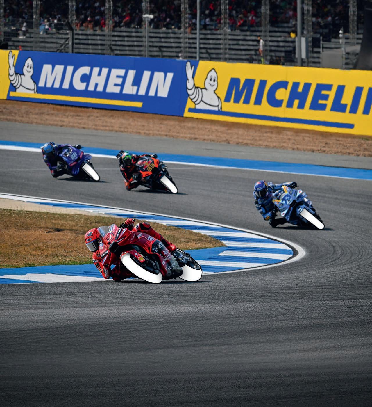 A MotoE começou como uma Taça, com rondas de corrida única, mas evoluiu para um verdadeiro Campeonato do Mundo composto exclusivamente por duplas corridas – sete no total em 2025. A categoria utiliza agora motos Ducati, com o modelo V21L a estabelecer recordes desde a sua estreia em 2023 como a moto única para toda a grelha. Desde o seu início em 2019, a MotoE compete com pneus Michelin, produzidos com uma elevada percentagem de materiais reciclados e sustentáveis. O resultado é um espetáculo de corridas intensas e equilibradas, que se tornaram um dos momentos altos de cada fim de semana de Grandes Prémios.