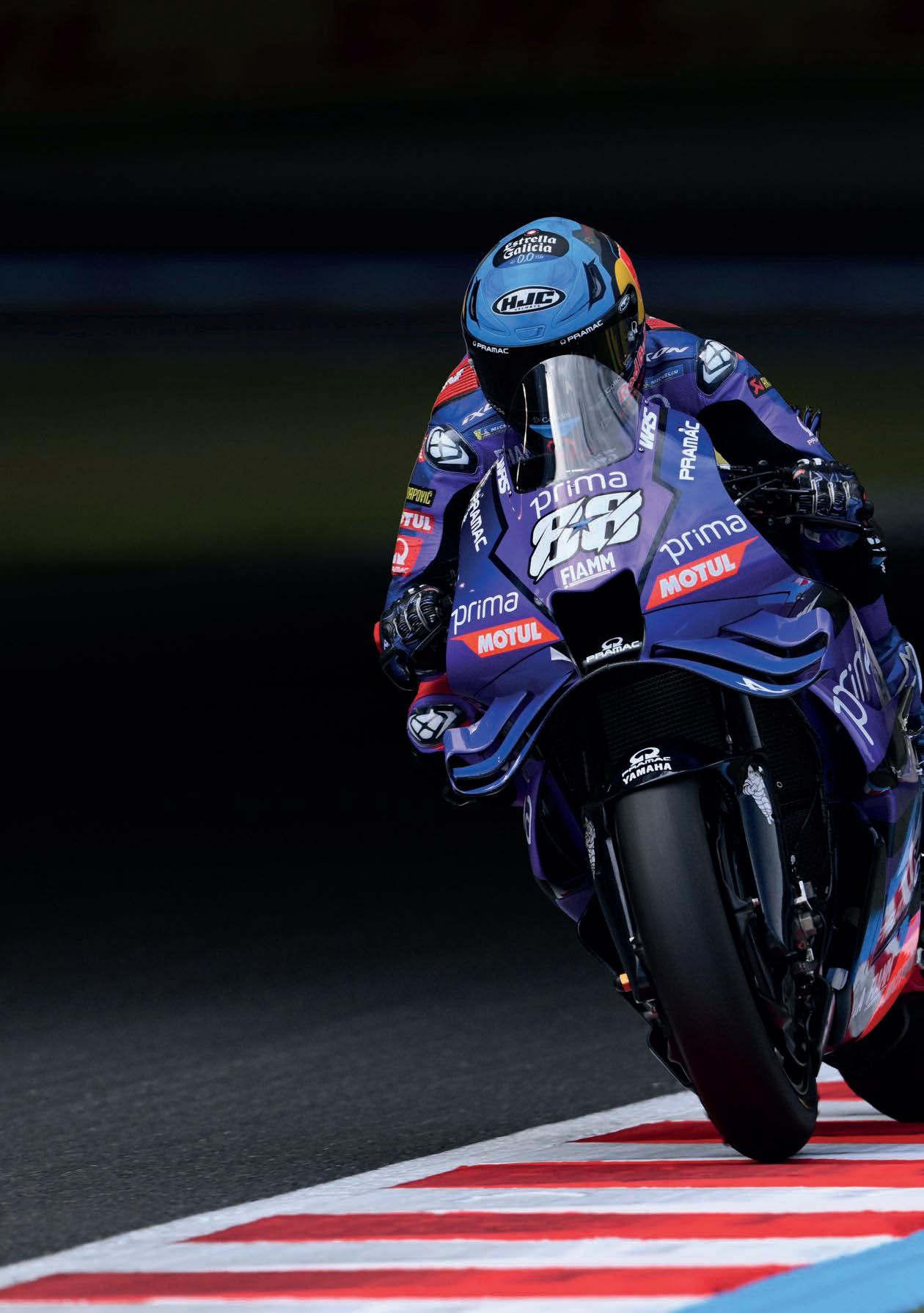 A continuidade é essencial, e é precisamente isso que a Yamaha assegura para 2025, mantendo o Campeão do Mundo de 2021, Fabio Quartararo, e Álex Rins na sua formação. Depois de uma época de 2024 difícil e sem pódios, há mudanças importantes no horizonte da marca de Iwata, com a esperada transição do motor de quatro cilindros em linha para um V4. O novo motor já foi testado em ambiente competitivo antes do previsto, e embora tenha mostrado potencial, ainda há caminho a percorrer.