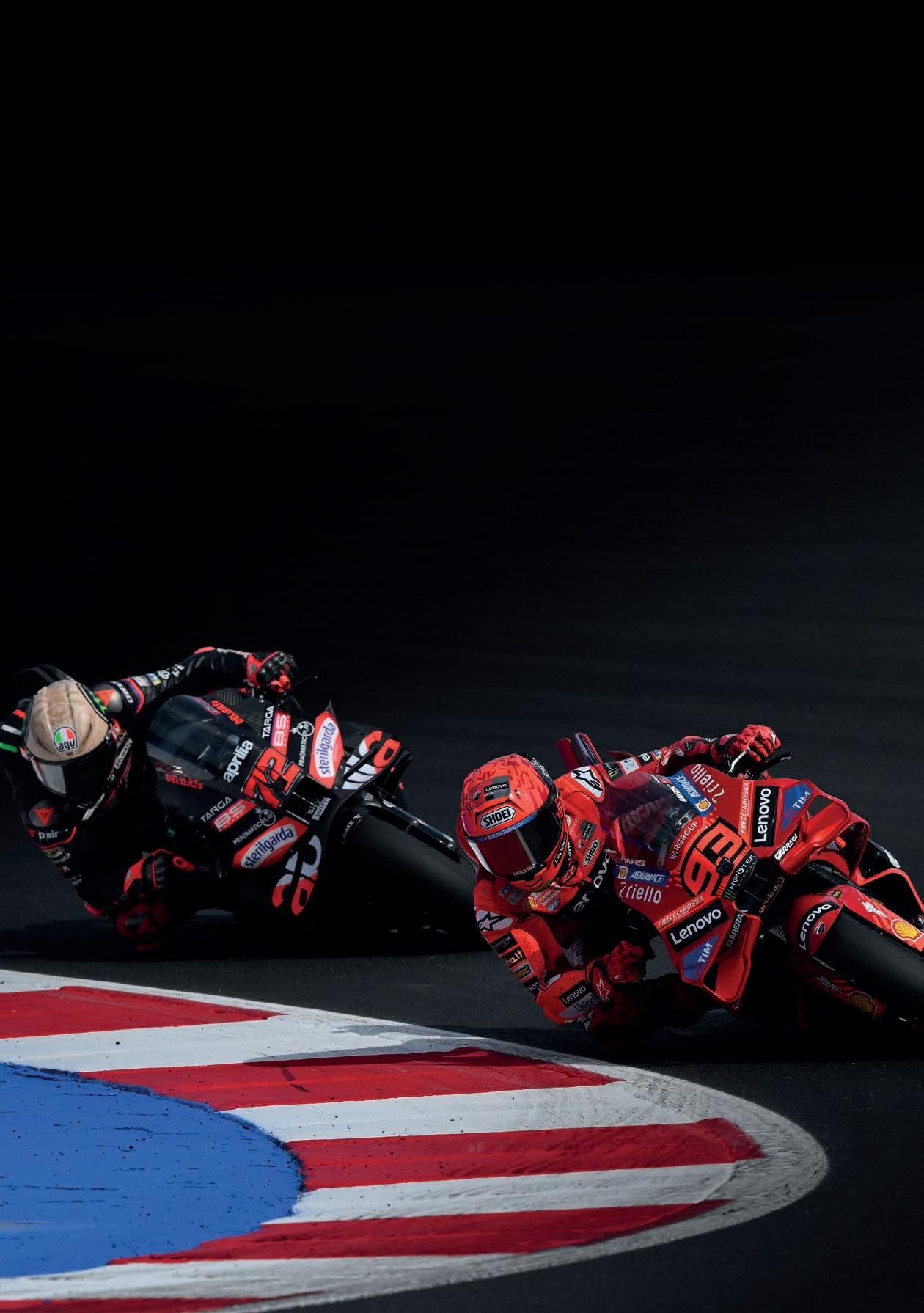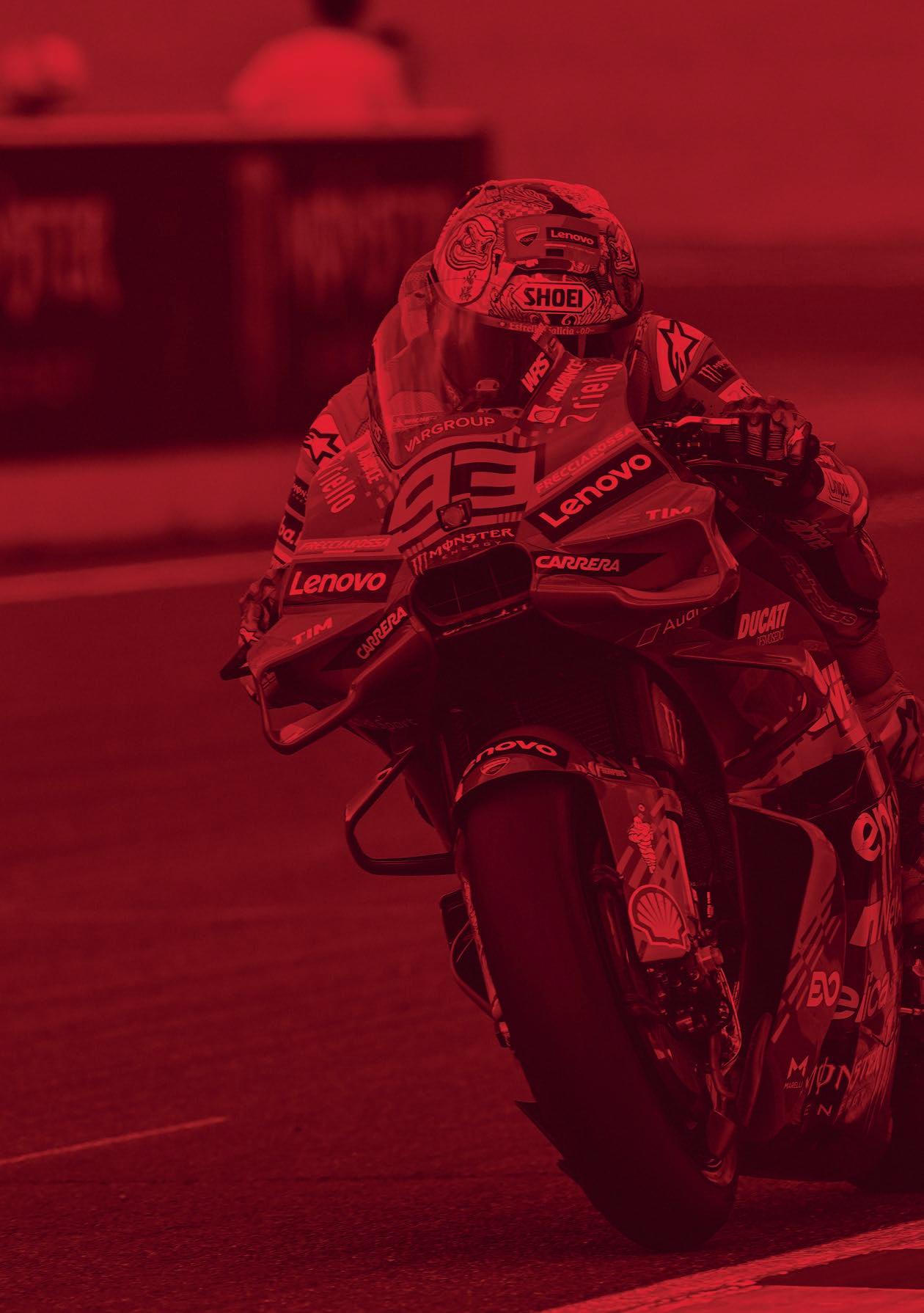 Se a serenidade sob pressão tivesse forma humana, provavelmente seria Francesco Bagnaia. Mas isso não significa que o bicampeão de MotoGP™ não tenha mostrado garra no caminho até se tornar uma das referências do desporto. Tal como as suas vitórias controladas do início ao fim não são a única razão pelas quais conquistou dois títulos na categoria rainha, Bagnaia também sabe lutar corpo a corpo com os melhores. Ao fazê-lo, tem sido protagonista de algumas das corridas mais memoráveis dos últimos tempos – e de sempre. Em 2025, será interessante observar a sua abordagem. Já não defende o #1, agora nas mãos de Jorge Martín na Aprilia. Isso fará com que ataque mais? Ou o contrário? Marc Márquez junta-se à equipa da Ducati em 2025, e só um dos dois sairá por cima. Seja qual for o desfecho, se o duelo for renhido, provará apenas uma coisa: a qualidade de ambos.