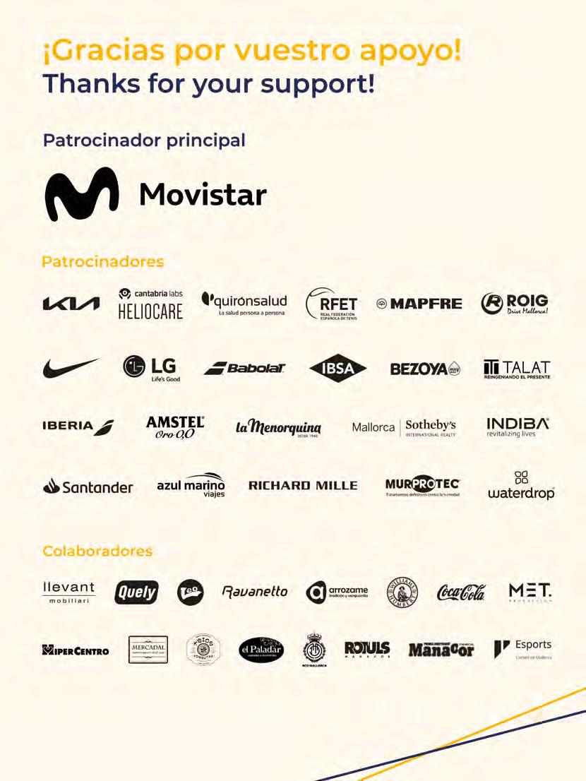 En estas breves líneas me gustaría dar las gracias especialmente a MOVISTAR. Su enorme implicación con la Rafa Nadal Academy desde los inicios y su renovado cariño hacia este torneo han sido excepcionales. Estoy convencido de que su apoyo será fundamental para el ilusionante futuro que tenemos por delante.