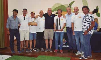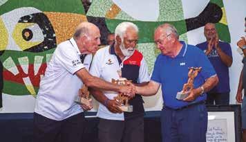 Los veteranos regatistas Miguel Ángel Armas Matallana (RCNA), Cristóbal Amador Pérez (RCNT) y Felipe del Rosario Hernández, recibieron cada uno, una escultura del “Diablo de Timanfaya”, que les premiaba por su continuada participación en las regatas César Manrique y San Ginés, considerándoles como leyendas de la vela.